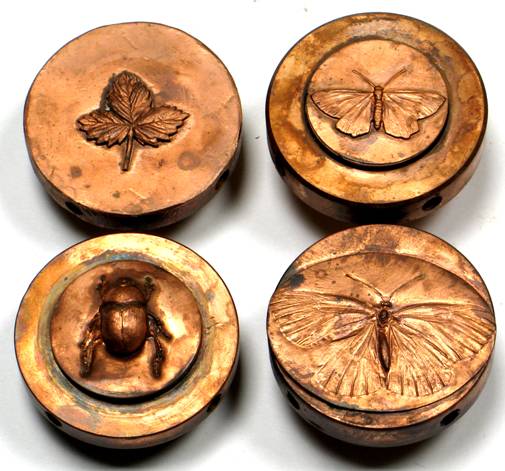 Медные копии изделий, полученные с природных объектов на станке СКФ-50 и предназначенных для использования в качестве электрод-инструмента на станке СНЭ-20МК, СКП-20, СКП-50