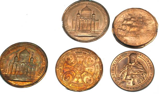 Медные копии изделий, полученные на станке СКФ-50 и предназначенных для использования в качестве электрод-инструмента на станке СНЭ-20МК, СКП-20, СКП-50