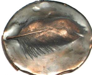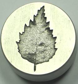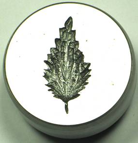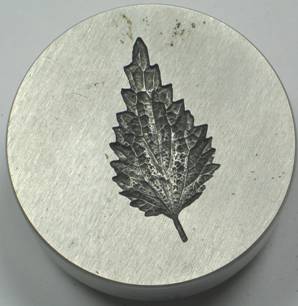 Образец, полученный на станке СНЭ-20МК, СКП-20, СКП-50 в закаленной стали твердостью 60 HRCэ с использованием в качестве электрод-инструмента медной копии изделия, полученные на станке СКФ-50 с природного листа крапивы