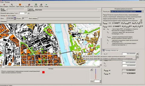- расчет размеров зон распространения облака горючих газов и паров при аварии;