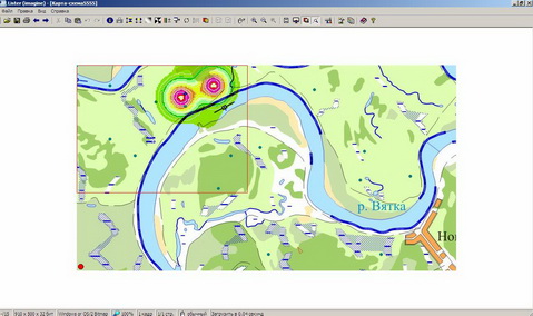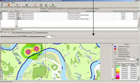 Сохраненная карта с результатами отображения потенциального риска от наружных установок на территории производственного объекта |