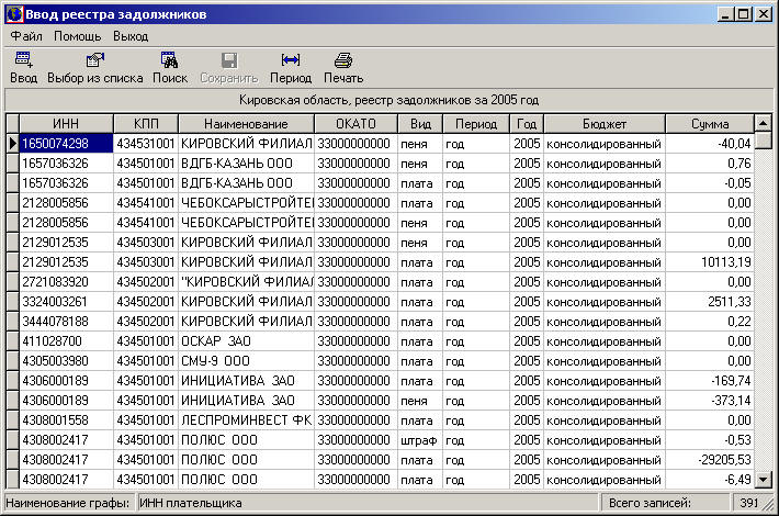 В рамках модуля финансово-экономического анализа реализованы задачи: Ввод данных (плановых поступлений) из органов Ростехнадзора РФ