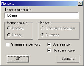 Если результатом поиска является множество значений, то пользователю предлагается выбрать конкретное
