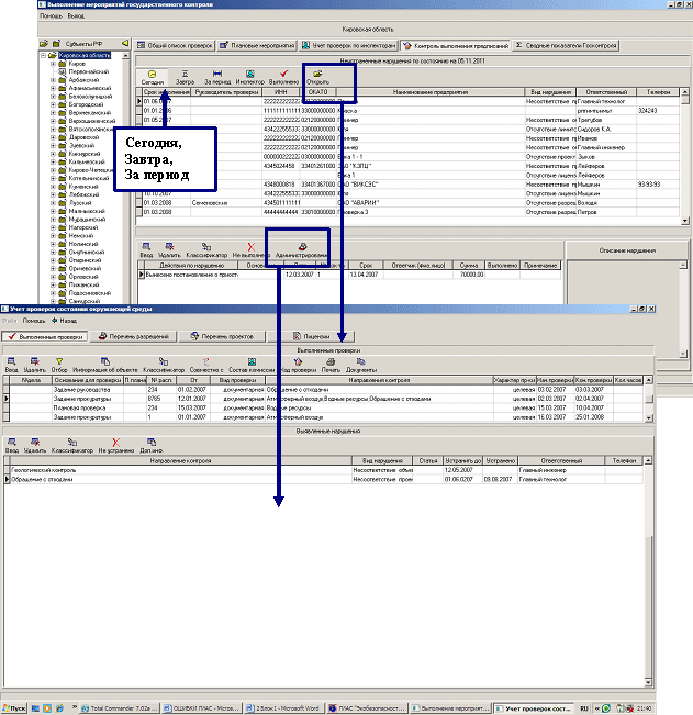 Примеры интерфейса программных модулей "Контроль выполнения проверок, контроль устранения, выполнения мероприятий по Государственному контролю" программного комплекса ГИАС "Экобезопасность"