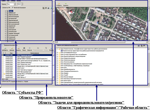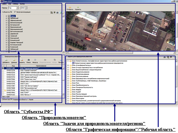 Примеры интерфейса главного окна ПК ГИАС "Экобезопасность"