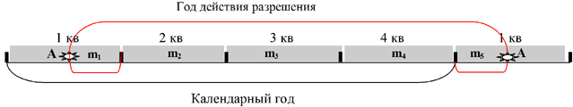 | // – | период от начала действия разрешения на ВСВ (А) до конца первого квартала (1); |