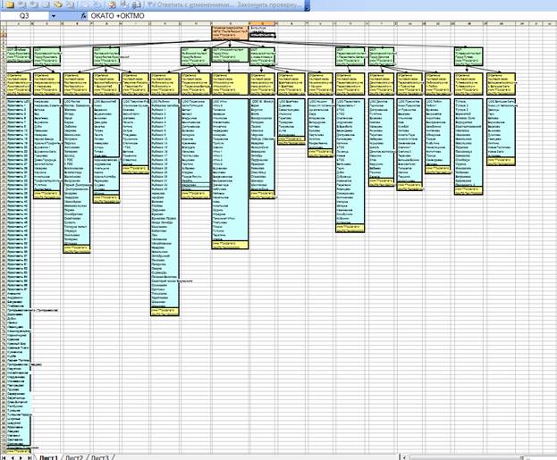 2) Построение вертикально-интегрированной структуры по РФ, Субъекту РФ, ОКТМО района, муниципального образования, сельского поселения для последующего ведения объектно-ориентированных баз данных.