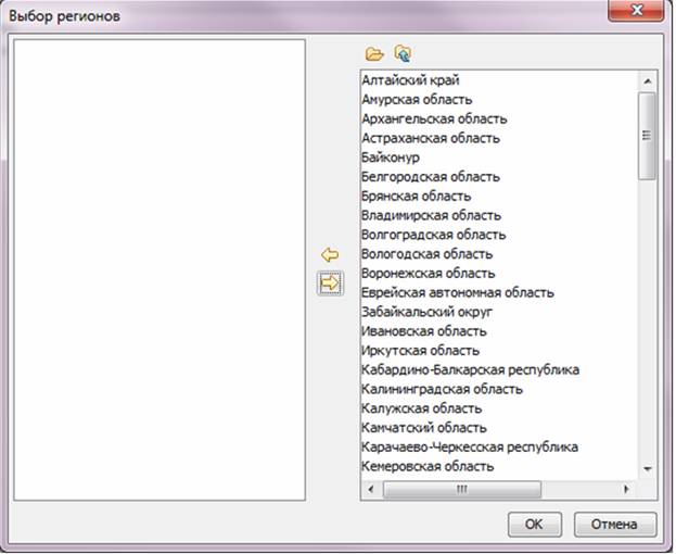 12.4) Стрелкой «влево» выбранный регион появляется в правом окне «Выбор регионов»