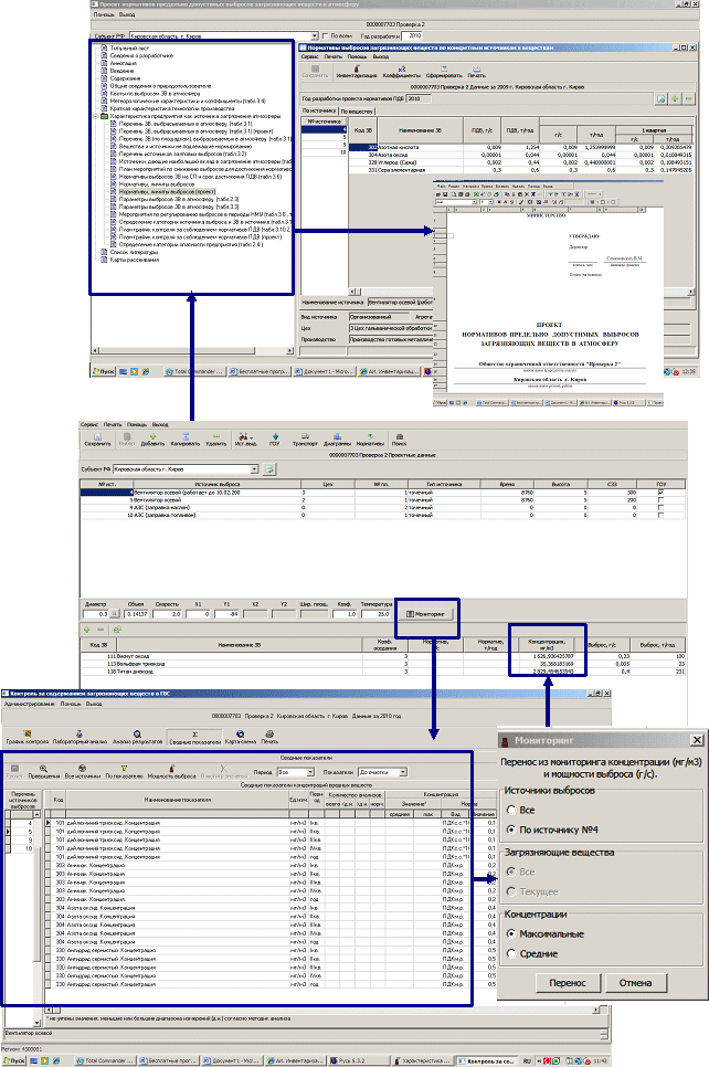 - Программа "Перенос данных в расчетный мадуль из данных отчетного года, фактических данных выбросов ЗВ из мониторинга, из проектных данных"