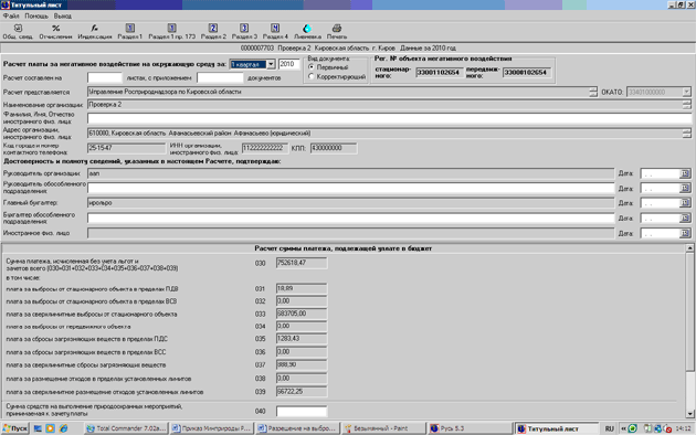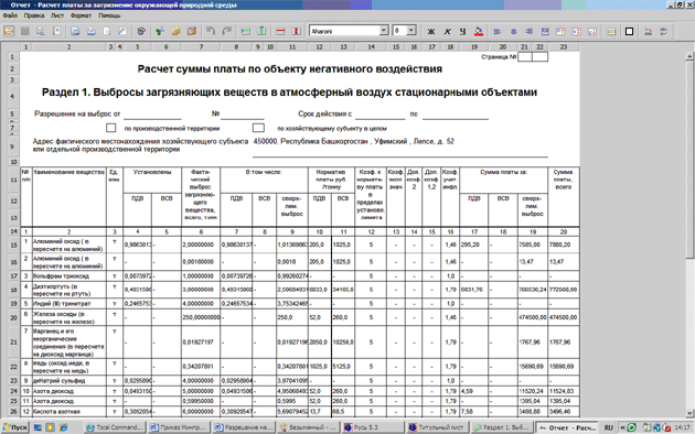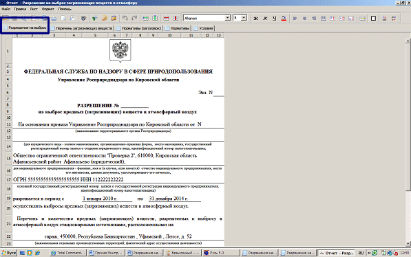 ПРОГРАММНЫЙ КОМПЛЕКС "РУСЬ" ФОРМИРУЕТ ВСЕ НЕОБХОДИМЫЕ ДОКУМЕНТЫ ДЛЯ ПОЛУЧЕНИЯ РАЗРЕШЕНИЯ НА ВЫБРОС ЗВ