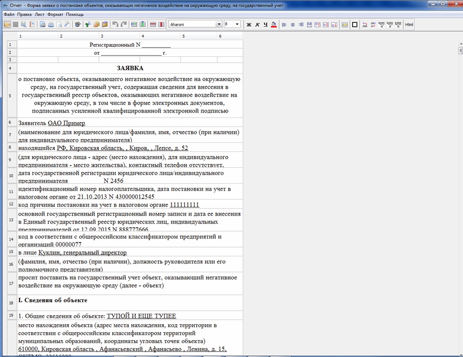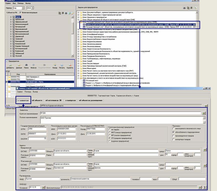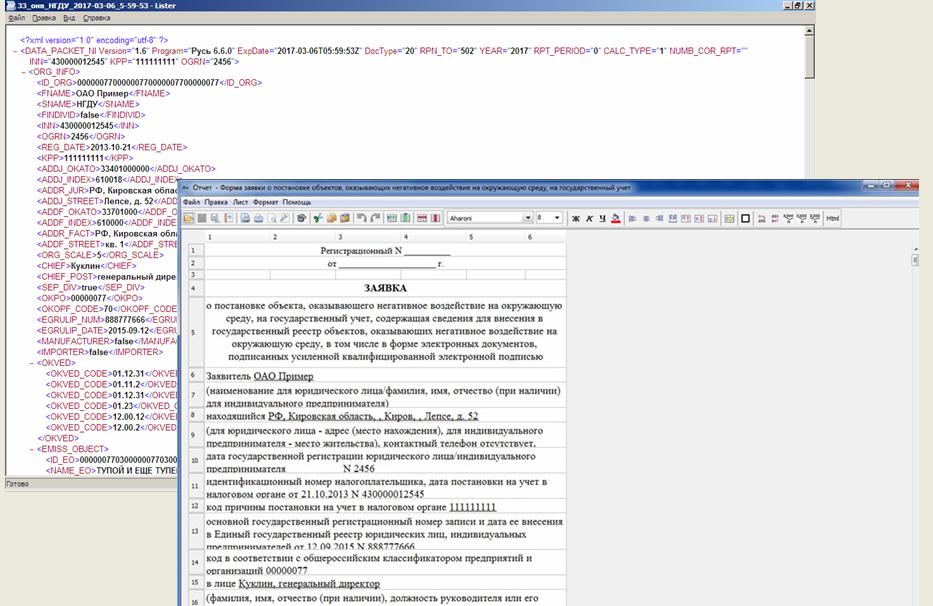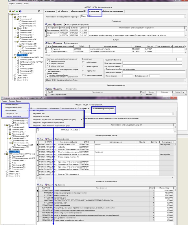 В пакет прикладных программ ПК «Русь» «Охрана окружающей среды», с версии 6.8, включены программные модули, реализующие функции по автоматическому формированию из баз данных ПК «Русь» заявки о постановке объектов негативного воздействия на окружающую среду (ОНВ) в соответствии с Приказом Министерства природных ресурсов и экологии РФ от 12.08.2022 N 532 в том числе, добавлена функция формирования выгрузки «Заявка» в XML формате для организаций, имеющих собственное программное обеспечение в соответствии со структурой описания выгрузки «Заявка» в XML формате, размещенной на сайте Росприроднадзора, (версия format_xml_pto_uonvos_v1_2.docx).