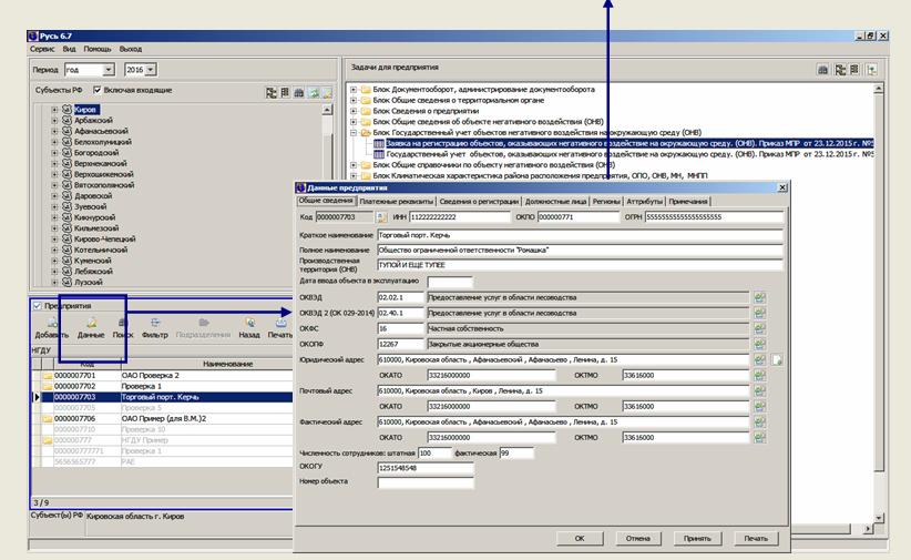 Автоматическое заполнение из баз данных Блока программ "Сведения о предприятии" сведений о об объекте негативного воздействия
