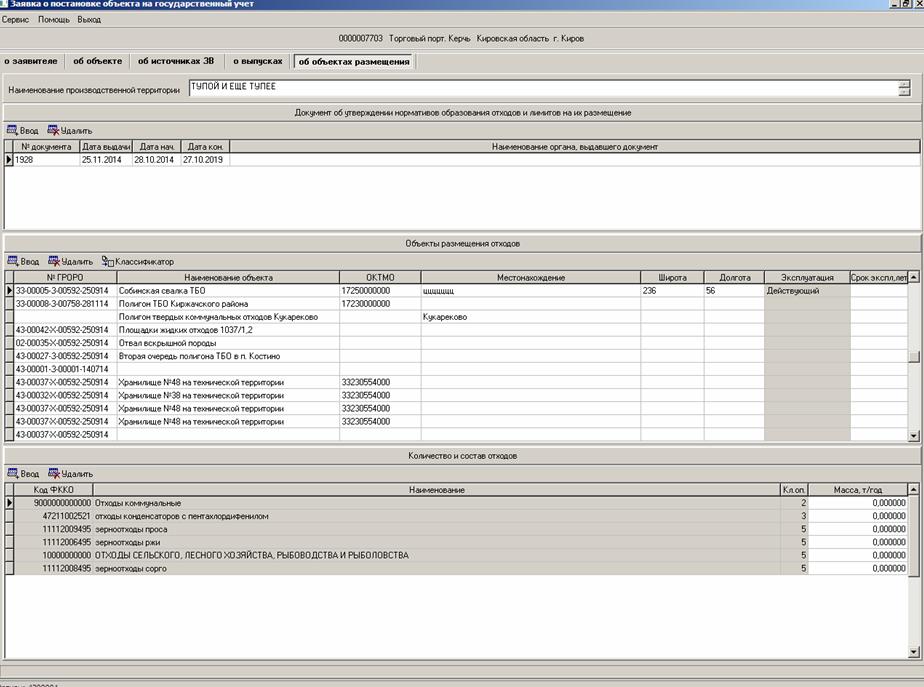 Автоматическое заполнение из баз данных Блока программ "Отходы производства и потребления" сведений об объектах размещения
