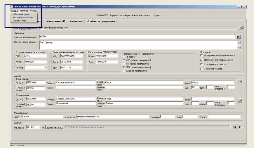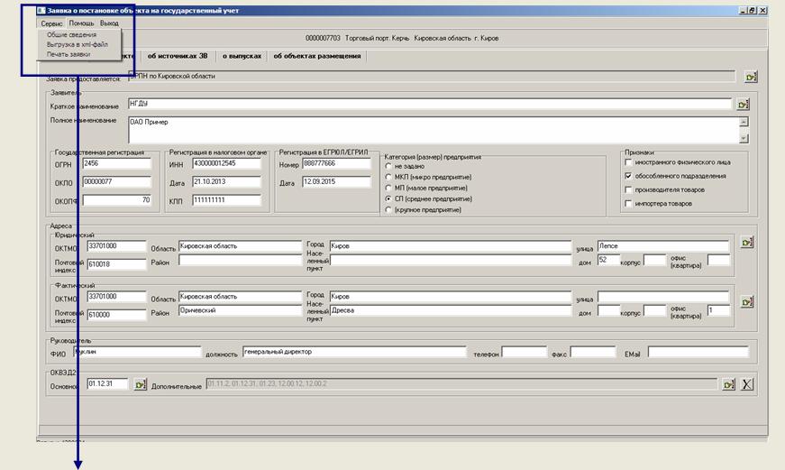 Автоматическое заполнение из баз данных Блока программ "Сведения о предприятии" сведений о заявителе