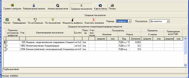 СВОДНЫЕ ПОКАЗАТЕЛИБлок "Мониторинг" накапливает, систематизирует и анализирует подробные данные о пространственно-временой изменчивости показателей качества атмосферного воздуха, почвы, снегового покрова, донных отложений, поверхностных и сточных вод: представлена картографическая информация наблюдательной сети мониторинга, периодичность контроля регламентируется графиками контроля, формирует базу данных результатов лабораторных испытаний по показателям качества компонентов природной среды. Кроме того, в блоке "Мониторинг" содержатся подробные сведения о хозяйственной деятельности юридических лиц, включая данные об источниках выбросов, сбросов, объектах размещения отходов производства и потребления. ![]() База данных о результатах лабораторных испытаний содержит сведения об отборе проб, и результатах испытаний в объеме требований, предъявляемых к аккредитованным лабораториям (кнопка "Лабораторный анализ" Результаты анализа могут быть занесены пользователем вручную на закладке "Пробы" - "Результаты анализа пробы". Если методикой обработки результатов предписывается определение среднего значения показателя по нескольким пробам, на закладке "Протоколы анализа" эта возможность реализована. Для этого пользователь обращается к экрану "Выбор проб для оформления результатов": ![]() Панель инструментов позволяет реализовать любой выбор в соответствии с поставленной задачей. По кнопке "Анализ результатов" По кнопке "Сводные показатели" ![]() Таблица "Сводные показатели концентраций вредных веществ" открывается на кнопке "Расчет" Поля "Период" и "Показатели" заполняются по кнопкам меню, например: ![]() Кнопкой "Превышения" Для просмотра сведений по конкретному источнику рекомендуется сформировать перечень сведений по этому источнику при помощи кнопки Для просмотра сведений по конкретному источнику необходимо отметить его курсором в "Перечне источников выбросов". Нажатием кнопки "По показателю" Для анализа содержания загрязняющих веществ в ГВС переключением кнопки "Мощность Выброса" Кнопкой "Очистить значения" Кроме того, значения концентраций вредных веществ могут заноситься (или редактироваться) вручную. Аналогично формируются сводные показатели по любому из объектов мониторинга. Результаты могут быть представлены в виде таблиц в текстовых файлах – кнопка Кнопкой "Карта-схема" открывается карта, на которой указано расположение контрольных точек (площадок, выпусков, створов, скважин и т.п.). Это помогает специалисту анализировать результаты техногенного воздействия на окружающую среду и принимать грамотные и своевременные решения. |