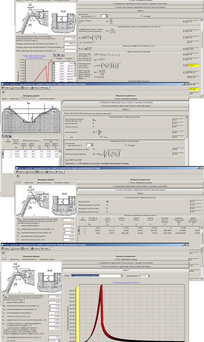 Методика расчета зон затопления при гидродинамических авариях на хранилищах производственных отходов химических предприятий", РД 09-391-00, Госгортехнадзор 2002г.
