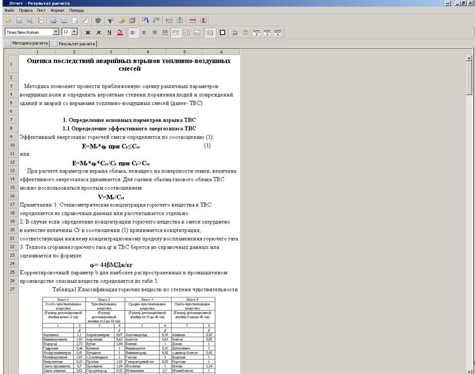 Программа предназначена для количественной оценки параметров ВУВ при взрывах ТВС, образующихся в атмосфере при промышленных авариях. При рассмотрении предполагается частичная разгерметизация или полное разрушение оборудования, содержащего горючее вещество в газообразной или жидкой фазе, выброс этого вещества в окружающую среду, образование облака ТВС, инициирование ТВС, взрывное превращение (горение или детонация) в облаке ТВС