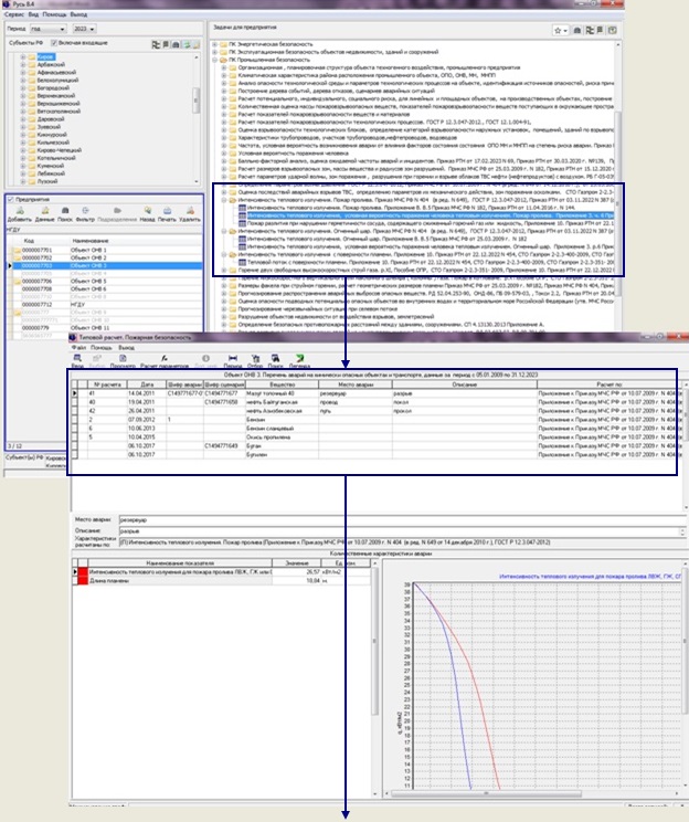 По итогам расчёта программный комплекс создаёт поля опасных факторов, избыточного давления при взрыве, теплового потока от пожара и т.д.., сформировать цифровой профиль риска объекта техногенного воздействия.