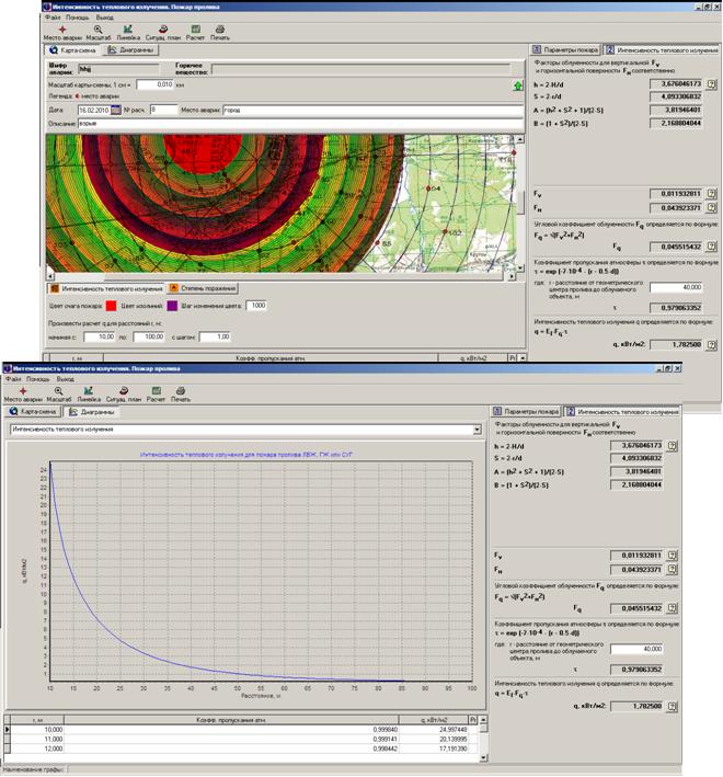 По итогам расчёта программный комплекс создаёт поля опасных факторов, избыточного давления при взрыве, теплового потока от пожара и т.д.., позволяет сформировать цифровой профиль риска объекта техногенного воздействия.