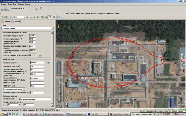 С его помощью можно определить количество поступающих в атмосферу опасных веществ при различных сценариях аварии, построить пространственно-временные поля концентраций опасных веществ в атмосфере, рассчитать размеры зон химического заражения и другие параметры.