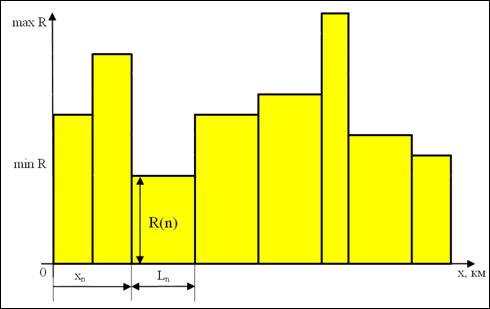 Иллюстрация формы представления распределения суммарной длины участков Ls трассы по показателю риска аварии R приведена на рис. 1.