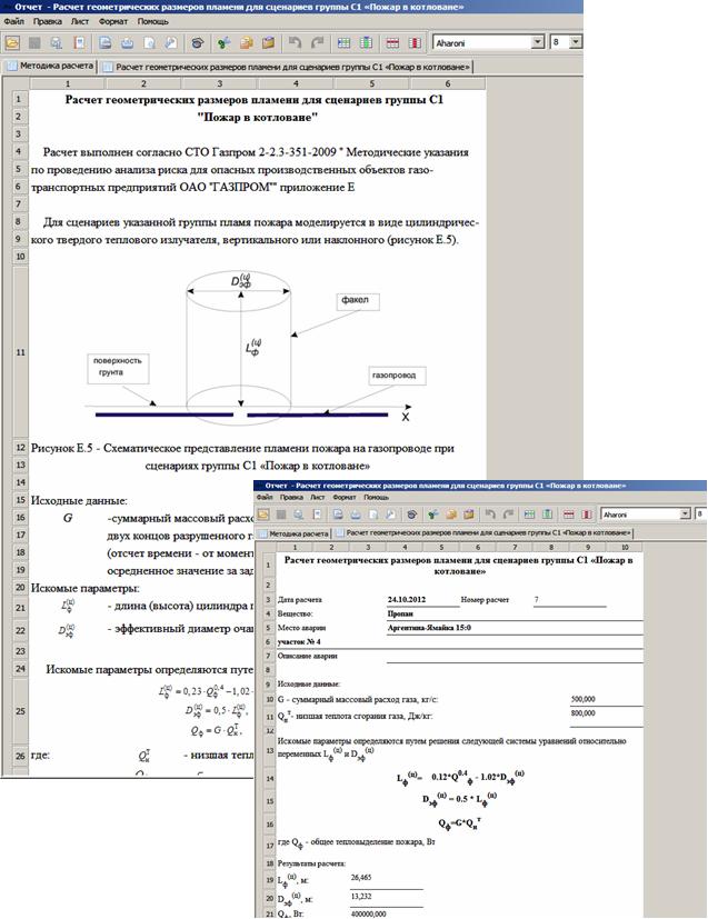 - Расчет геометрических размеров пламени для сценариев группы С1 "Пожар в котловане"