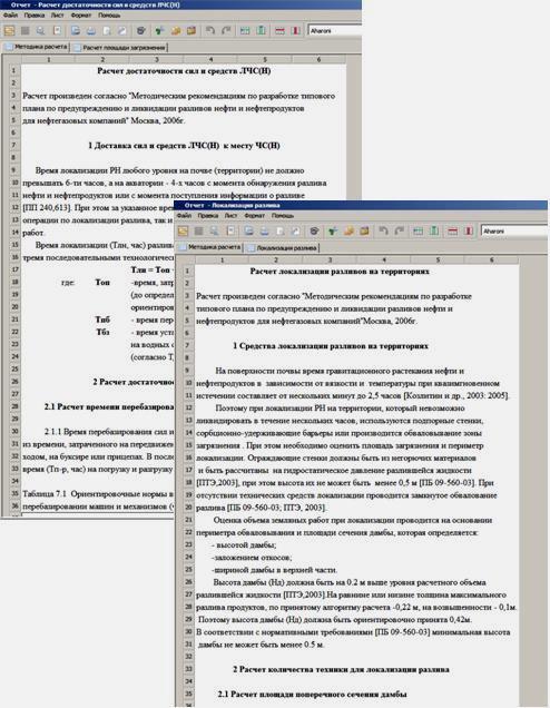 - Пакет прикладных программ "Определение площади и формы разлива нефтепродуктов. Раздел 3.10 "Росэнерго". 2006г."