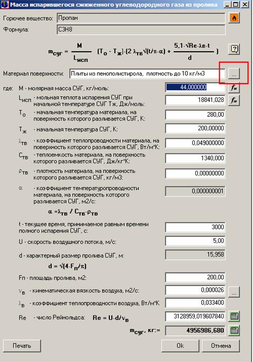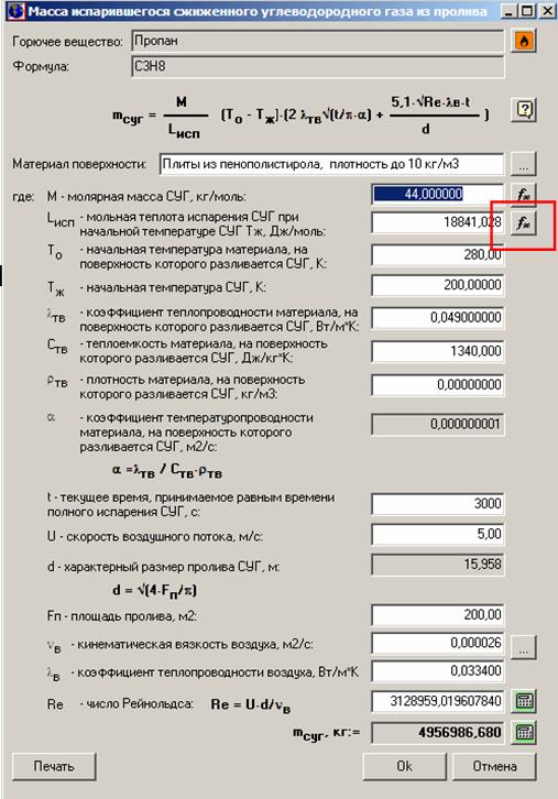 ПРОГРАММА "МАССА ИСПАРИВШЕГОСЯ СЖИЖЕННОГО УГЛЕВОДОРОДНОГО ГАЗА ИЗ ПРОЛИВА. ПРИЛОЖЕНИЕ В. ПРИКАЗ МЧС РФ №182"