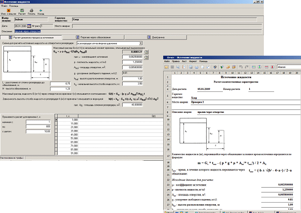 С его помощью можно определить количество поступающих в атмосферу опасных веществ при различных сценариях аварии, построить пространственно-временные поля концентраций опасных веществ в атмосфере, рассчитать размеры зон химического заражения и другие параметры.