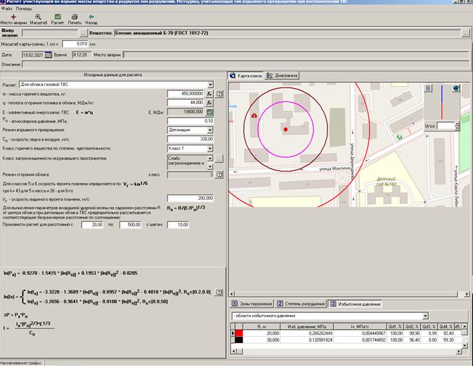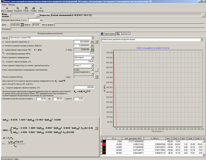 ПРИМЕР ИНТЕРФЕЙСА ПАКЕТА ПРИКЛАДНЫХ ПРОГРАММ "РАСЧЕТ УЧАСТВУЮЩЕЙ ВО ВЗРЫВЕ МАССЫ ВЕЩЕСТВА И РАДИУСОВ ЗОН РАЗРУШЕНИЙ. ПРИЛОЖЕНИЕ 3. ПРИКАЗ РТН ОТ 31.10.2022 N 379 (ОТ 15.12.2020 Г. №533). МЕТОДИКА, УЧИТЫВАЮЩАЯ ТИП ВЗРЫВНОГО ПРЕВРАЩЕНИЯ (ДЕТОНАЦИЯ/ДЕФЛАГРАЦИЯ) ПРИ ВОСПЛАМЕНЕНИИ ТВС":