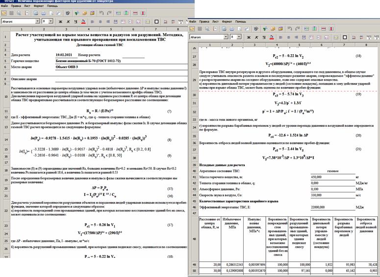 Пакет прикладных программ "Расчет участвующей во взрыве массы вещества и радиусов зон разрушений. Приложение 3. Приказ РТН от 31.10.2022 N 379 (от 15.12.2020 г. №533). Методика, учитывающая тип взрывного превращения (детонация/дефлаграция) при воспламенении ТВС" в составе: