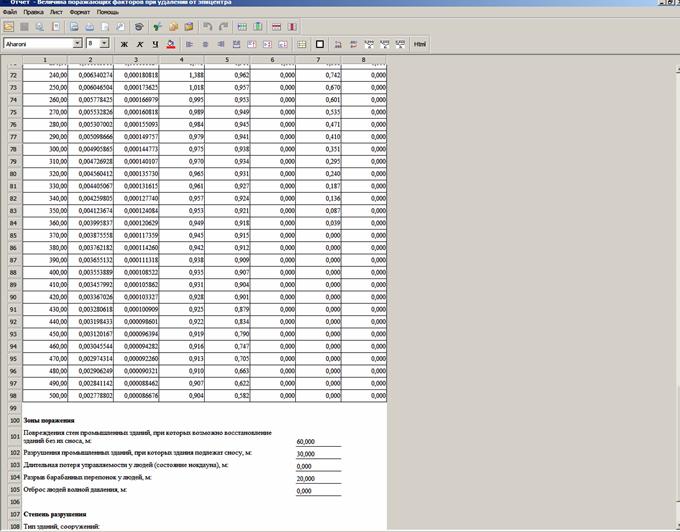 - Расчет зон поражения при взрывах твердых и жидких химически нестабильных соединений