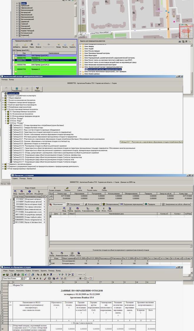 ПРИМЕР ИНТЕРФЕЙСА АВТОМАТИЧЕСКОГО ФОРМИРОВАНИЯ ИЗ БАЗ ДАННЫХ ФОРМ ЭКОЛОГИЧЕСКОГО ПАСПОРТА ПРИРОДОПОЛЬЗОВАТЕЛЯ И ФОРМ ПЕЧАТИ В РЕДАКТОРЕ ПЕЧАТИ ПК "РУСЬ"