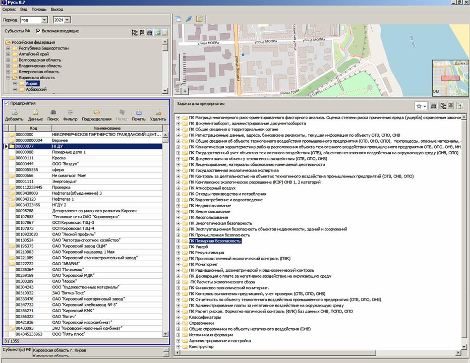 ПК ГИАС "Экобезопасность", "Русь" обеспечивает подключение неограниченного количества рабочих станций для ввода, анализа и обработки информации.