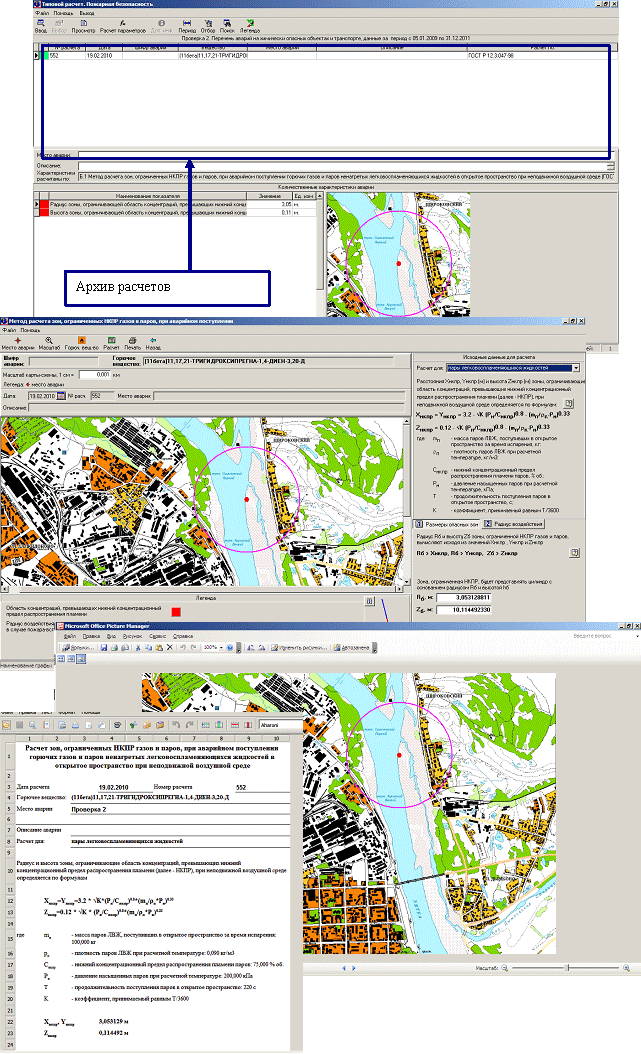- Пакет прикладных программ "Проведение расчета зон поражения, характеризующих размещение людей на ситуационном плане, с целью определения последствий аварий на пожаро-, взрыво- и химически опасных объектах"