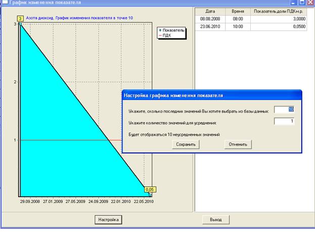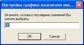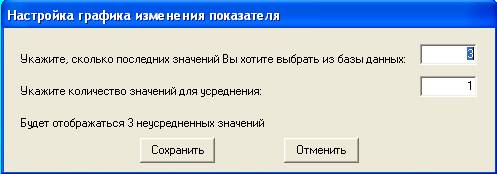 Для построения графика кнопкой «Настройка» пользователь указывает, сколько последних значений показателя из базы данных следует выбрать, а также указать количество значений показателя для усреднения.