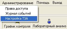 Кнопкой «Администрирование» на главном экране мониторинга по строке меню «Настройка ТЗА»