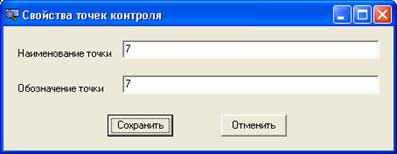 Перечень точек контроля задается при первоначальной настройке и корректируется по потребности. Добавление новой точки выполняется по кнопке «Добавить». При этом открывается окно свойств точки контроля следующего вида: