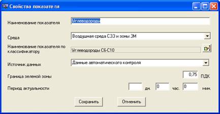 Перечень показателей первоначально формируется при первоначальной настройке программы и в дальнейшем может быть изменен. Добавление показателя осуществляется по кнопке «Добавить» При этом открывается окно общих свойств показателя, действительных для всех точек пробоотбора: