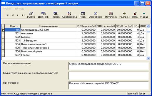 классификатор загрязняющих веществ. Конкретный внешний вид классификатора