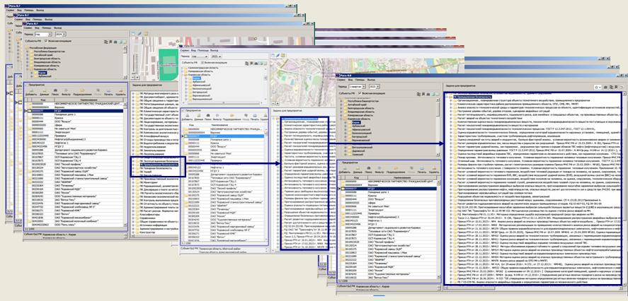 может работать как отдельно, так и собираться в заранее заданную единую взаимосвязанную функциональную конфигурацию в соответствие с организационной, объемно-планировочной структурой предприятия, компании, объектов ОНВ, ОПО, ПОО, с возможностью установки на отдельные компьютеры, ноутбуки, с объединением баз данных на своих серверах, как в локальных, так и в корпоративных сетях, используя клиент-серверную технологию доступа к базам данных, построения любой распределенной системы сбора и обработки информации, как в вертикально-интегрированных компаниях, так и у субъектов МСП с использованием локальных вычислительных сетей, сети интернет, беспроводных сетей передачи данных, как по отдельности, так и в различных сочетаниях с возможностью подключения неограниченного количества рабочих станций для ввода, анализа и обработки информации, в том числе, с использованием виртуальных машин, сохранения введенных баз данных, выполненных расчетов, проектов, по каждому обособленному подразделению