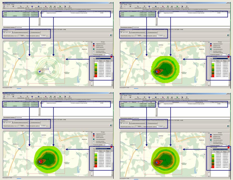 построением полей потенциального риска, путей эвакуации при пожаре, базами данных, исходными сведениями для расчетов.