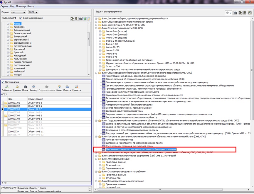 12. ПК "Русь" "Матрица многомерного риск-ориентированного факторного анализа источников риска, профилей риска, определения спектра возможных нежелательных событий, риска причинения вреда, оценки тяжести причинения вреда (ущерба) охраняемым законом ценностям, оценке вероятности наступления негативных событий "