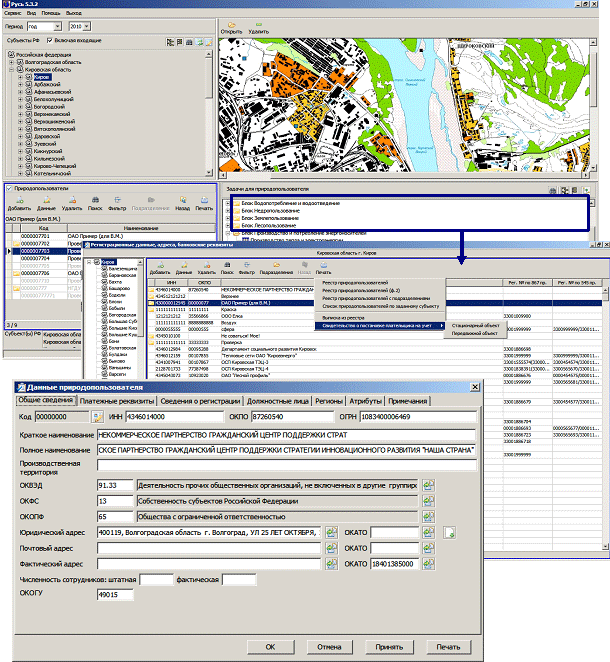 ПРИМЕРЫ ИНТЕРФЕЙСА ГЛАВНОГО ОКНА ПК "РУСЬ", ПК ГИАС "ЭКОБЕЗОПАСНОСТЬ" БЛОК "ОБЩИЕ СВЕДЕНИЯ О ПРОМЫШЛЕННОМ ОБЪЕКТЕ" ПК "РУСЬ", ПК ГИАС "ЭКОБЕЗОПАСНОСТЬ"