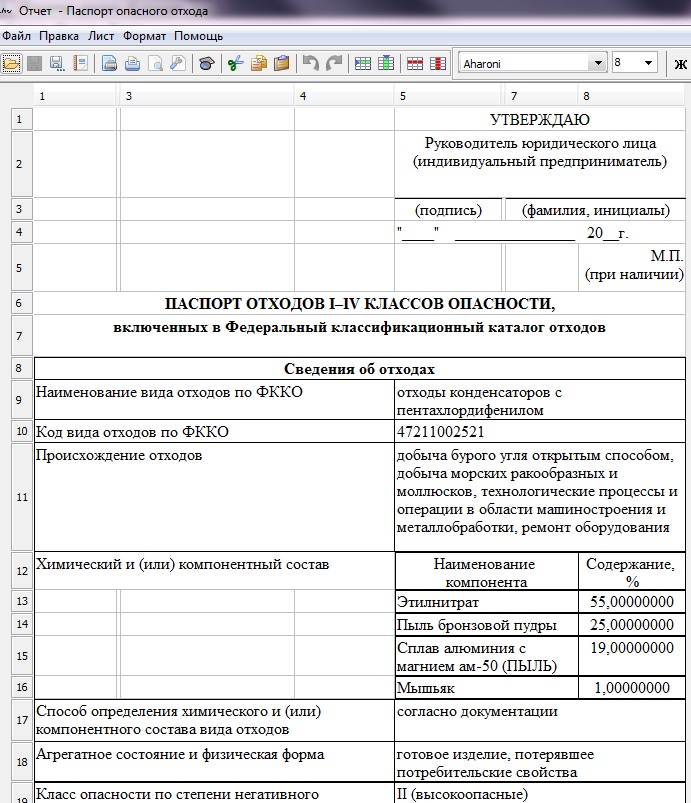 ФОРМИРОВАНИЕ ПАСПОРТА ОПАСНОГО ОТХОДА В СООТВЕТСТВИИ С