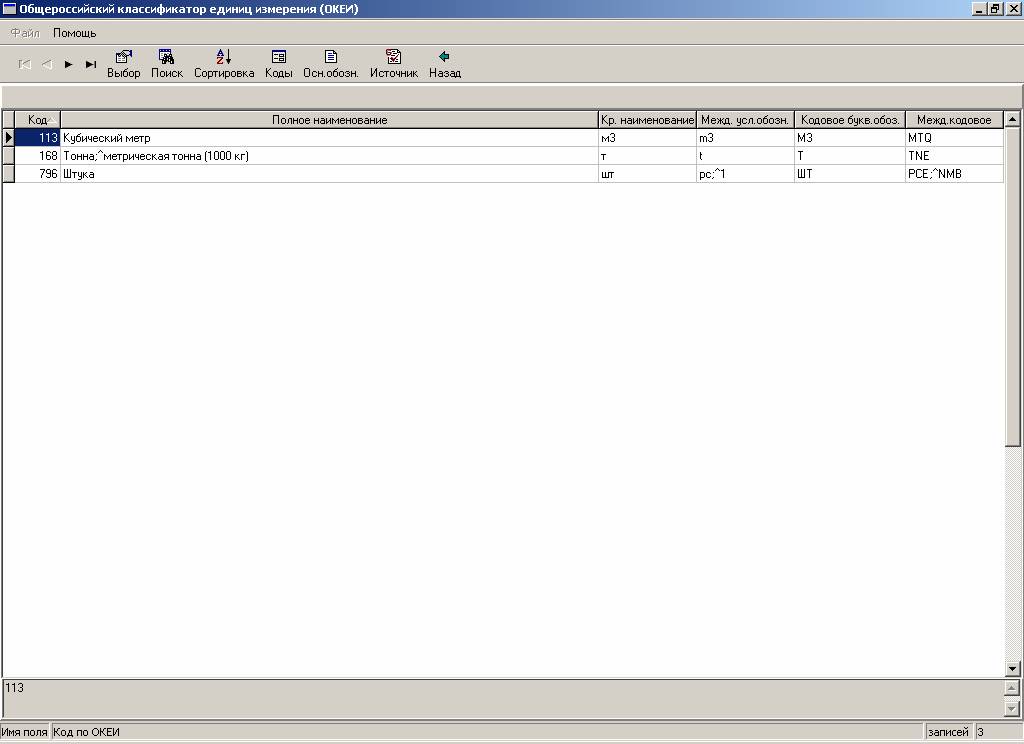 в поле "Единица измерения", откроется окно с перечнем единиц измерения, в которых измеряются количества отходов:
