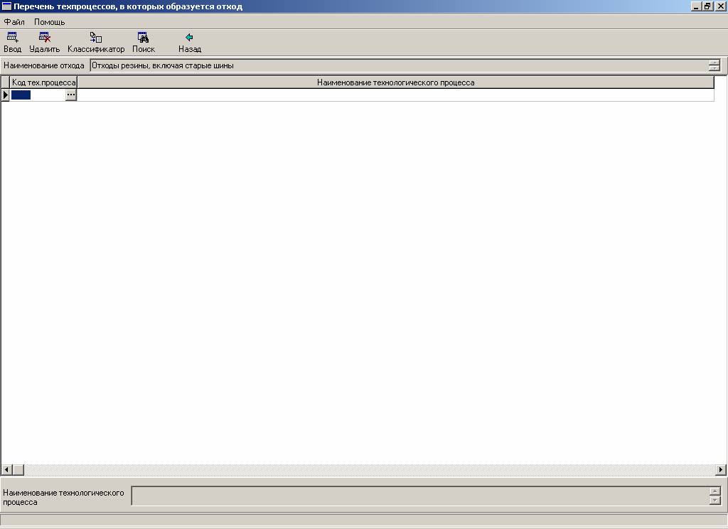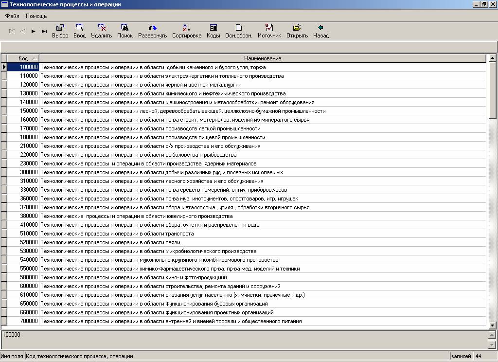 Следует нажать кнопку "Ввод", затем кнопку "Классификатор", откроется окно: "Классификатор "Технологические процессы и операции".