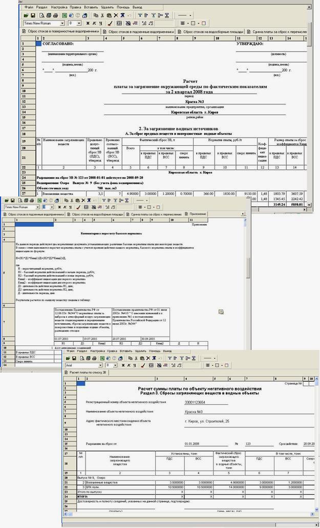 Программы ПК "Русь" "Водопотребление и водоотведение" имеют универсальный редактор отчетов, содержат Программу-конструктор "Формирование проекта нормативов ПДВ", Программу-конструктор "Проект нормативов образования и размещения отходов (ПНООЛР)", Программу-конструктор "Формирование технического отчета о неизменности технологических процессов" и др.