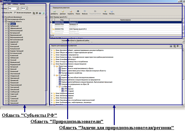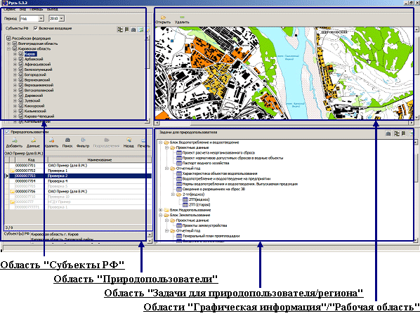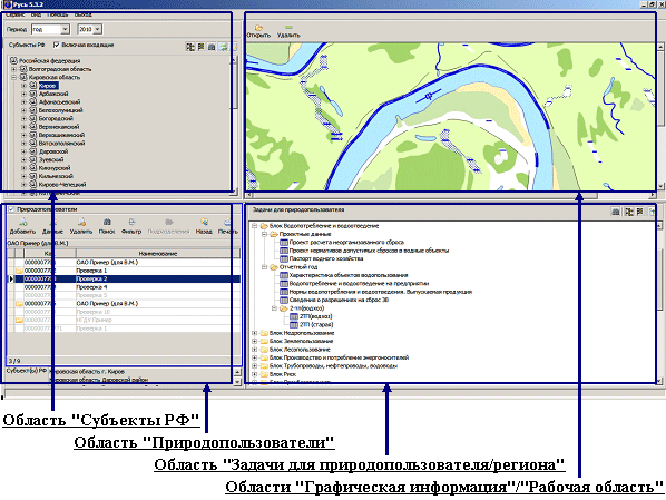 ПРИМЕРЫ ИНТЕРФЕЙСА ГЛАВНОГО ОКНА ПРОГРАММНОГО КОМПЛЕКСА ПК "РУСЬ" ПАКЕТ ПРИКЛАДНЫХ ПРОГРАММ "ХАРАКТЕРИСТИКИ ОБЪЕКТОВ ВОДОПОЛЬЗОВАНИЯ" ПК "РУСЬ"