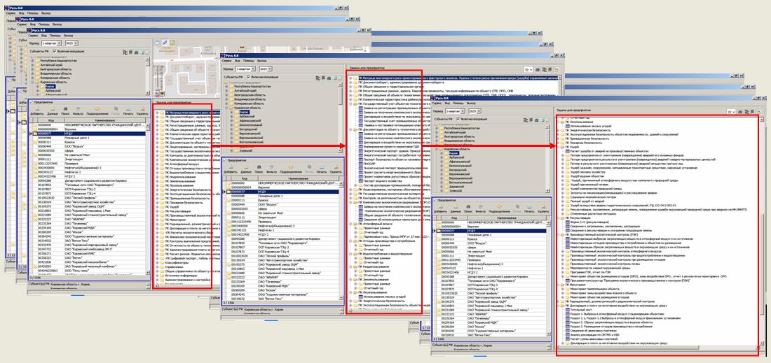 В программный комплекс ПК "Русь", ПК ГИАС "Экобезопасность", в рамках ИТС, постояннно вносятся изменения, связанные с изменениями НПА, улучшением функциональных характеристик программных модулей, поэтому "скриншоты" экранов функциональных блоков постоянно изменяются и некоторые окна программ, приведенные на